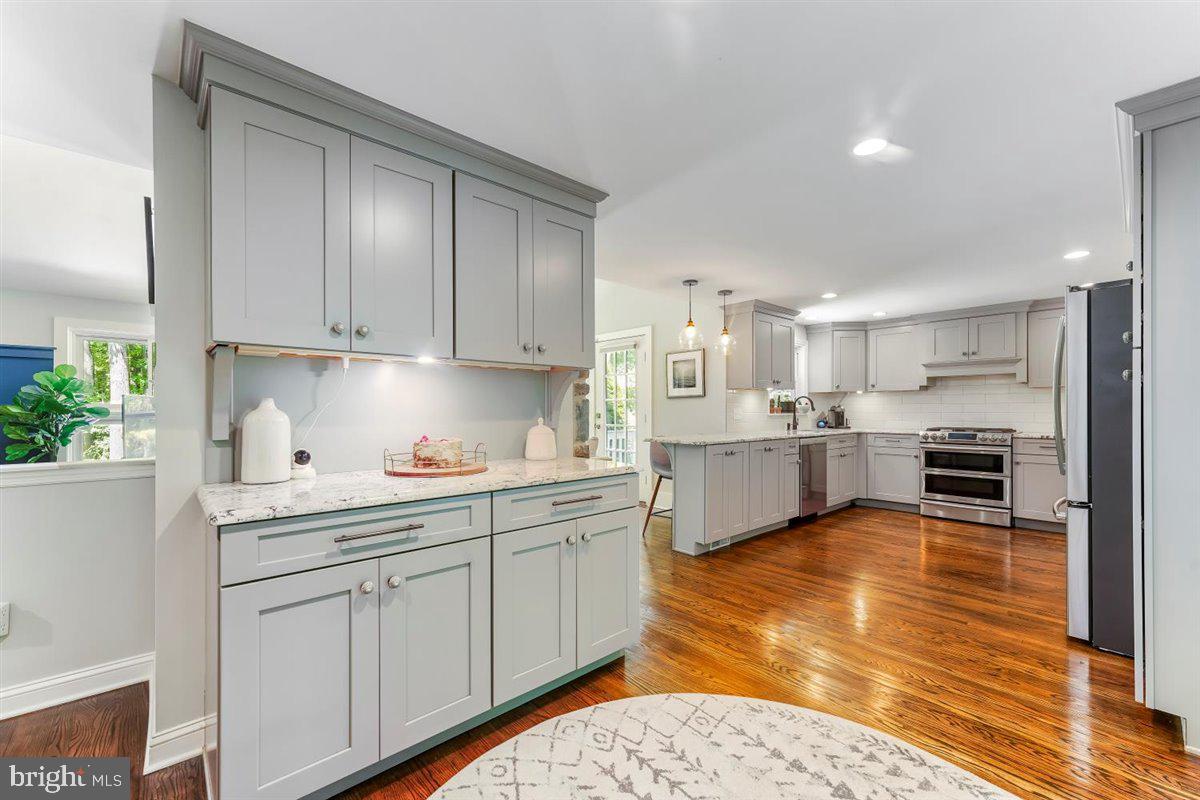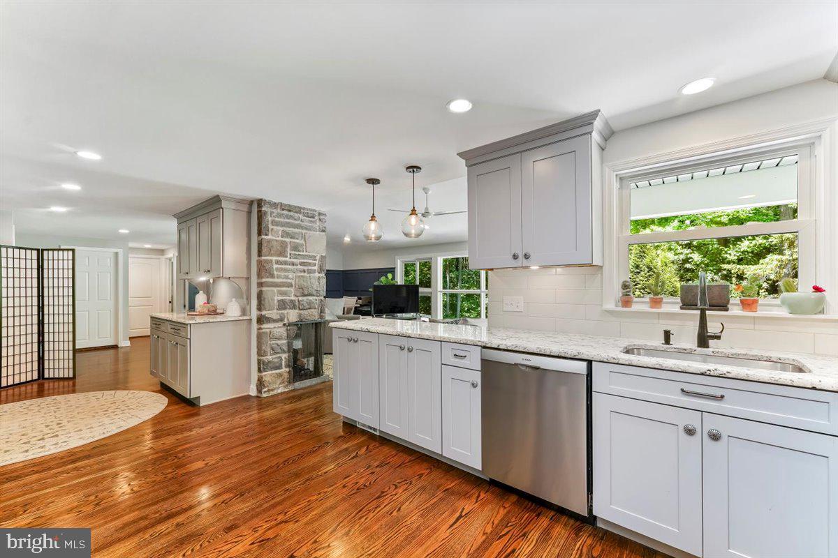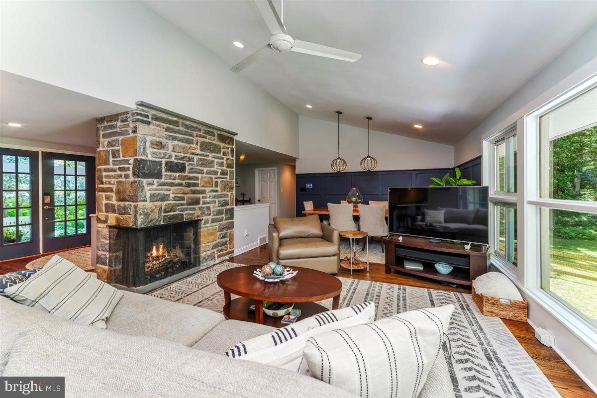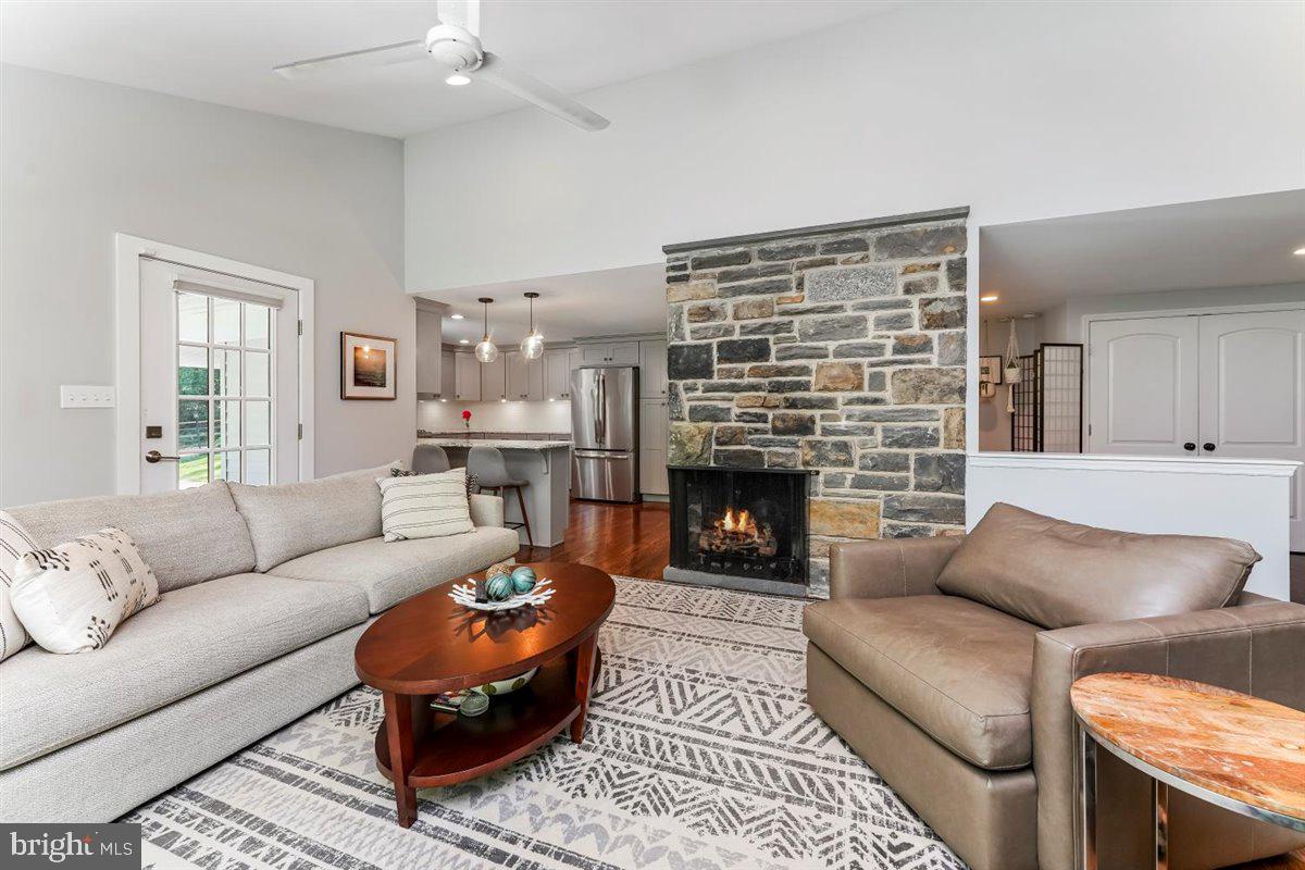 Gorgeous updated ranch home with spectacular scenic views from every window is now available! Many updates throughout this lovely home with a welcoming craftsman front porch design plus several remaining mid-century interior design accents such as the two stone gas fireplaces. The main level offers a welcoming foyer with beautiful wood floors, an updated gourmet kitchen with granite counters, stainless steel appliances, counter seating, and easy access to your outdoor grill. The open-format living room offers scenic views of the property and a large stone fireplace. The formal dining area with custom millwork is perfect for entertaining. The main level also offers a large full bath, primary bedroom as well as a second bedroom or office. The lower level also offers an interesting option for a potential in-law suite with direct access from the driveway. This home is meticulously maintained throughout! The lower level has a family room with custom built-in shelving, a stone gas fireplace, two additional bedrooms, a laundry/utility room, and a large full bath with a jetted tub. The rear of the property has a fenced-in yard close to the home and a larger unfenced area of the yard also has a rear unpaved driveway. New roof installed in 2021. Whole house generator included. Rose Tree Media Schools. Only a few minutes to the restaurants and shoppes in downtown Media and Newtown Square. Easy access to the Philadelphia airport and Wilmington.
